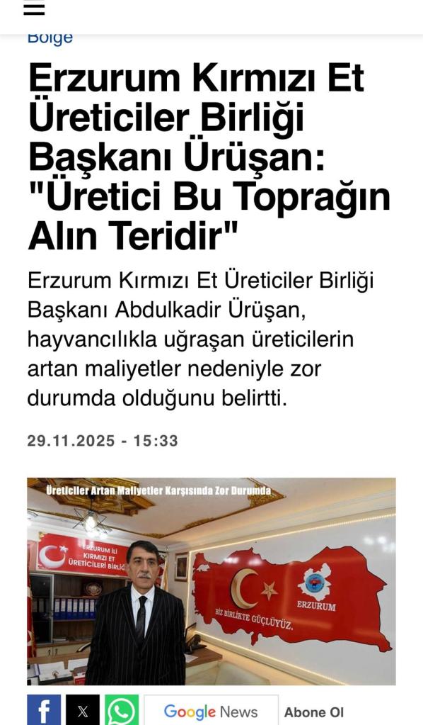 “Erzurum’un Kırmızı Et Üretiminde Yeni Bir Dönem: Birliğimizden İlk Mesaj”
